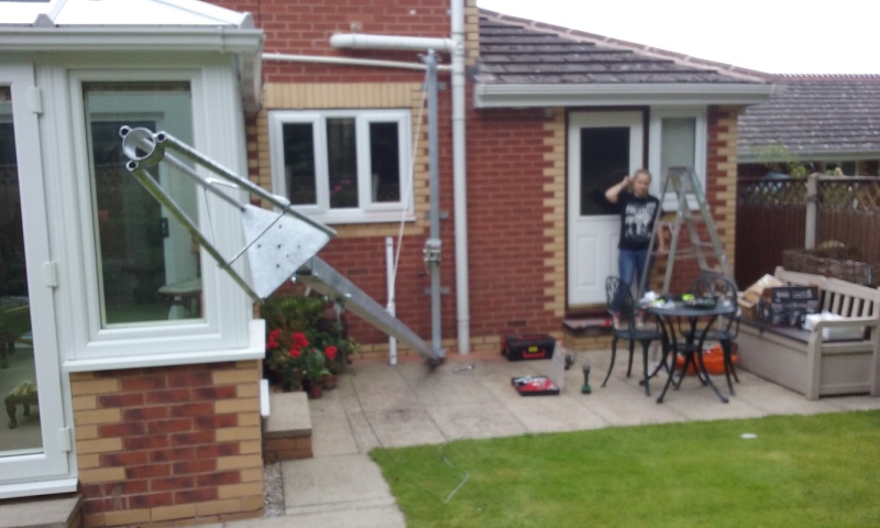 Free standing 12m 3 section 90mm galvanised steel box section mast with wireless remote winch, rotator cage, alloy stub mast, ground sleeve.
